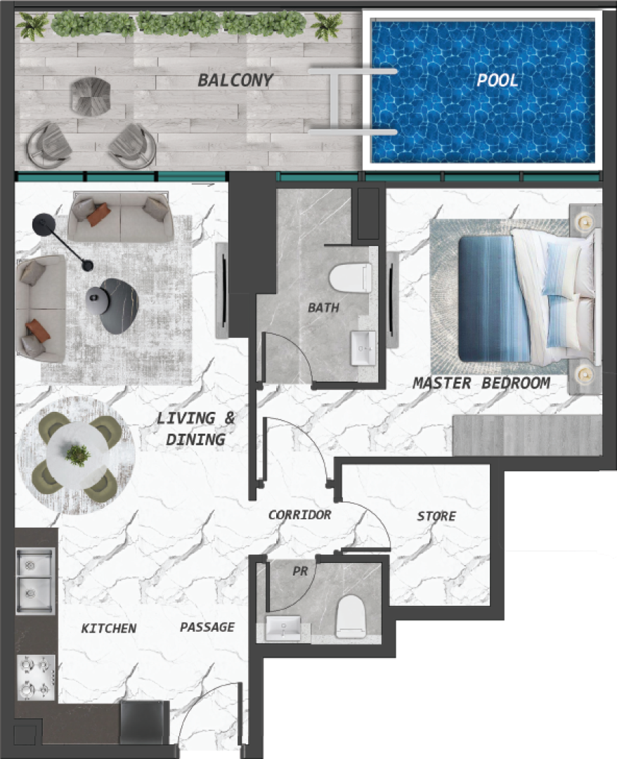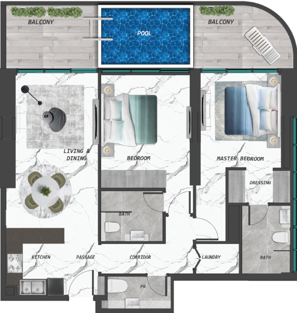 الخطة السكنية في المشروع تشمل خيارات متنوعة تناسب الأفراد والعائلات، كما تتوفر خطط دفع مرنة لتسهيل عملية الشراء.