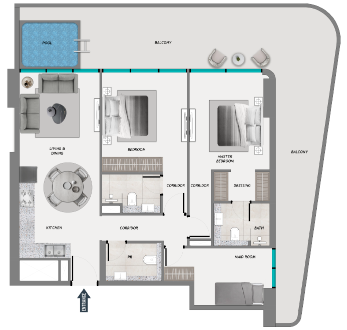 استمتع بمجموعة واسعة من المرافق المصممة للراحة والترفيه: حدائق خضراء مُنسقة، مسابح واسعة، مسابح للأطفال، نظام المنزل الذكي، ومساحات مشتركة للعائلة والأصدقاء.